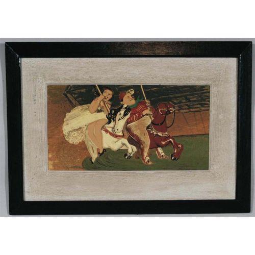 1 ELIZABETH OLDS On The Carousel 10"x 18" oil on board CONDITION REPORT: excellent.