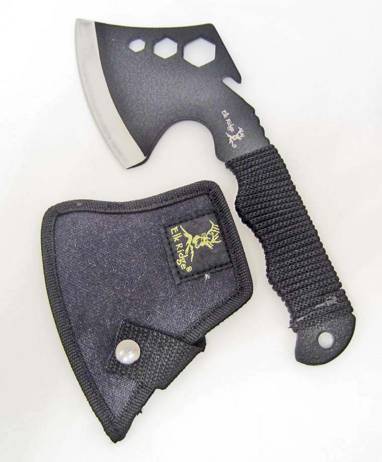 Measures approx 9-1/2". 3-3/8" axe head with 4" cutting edge.