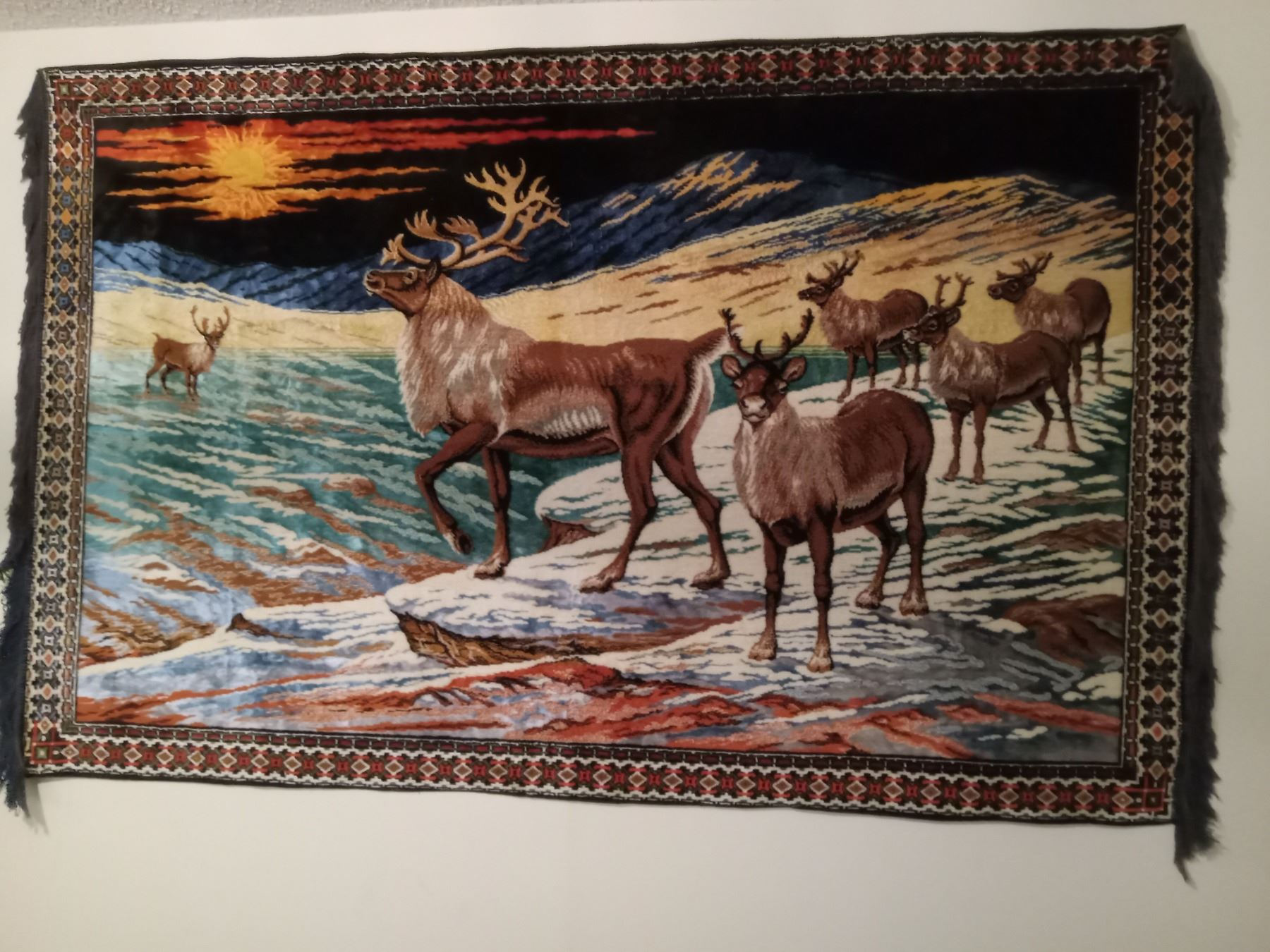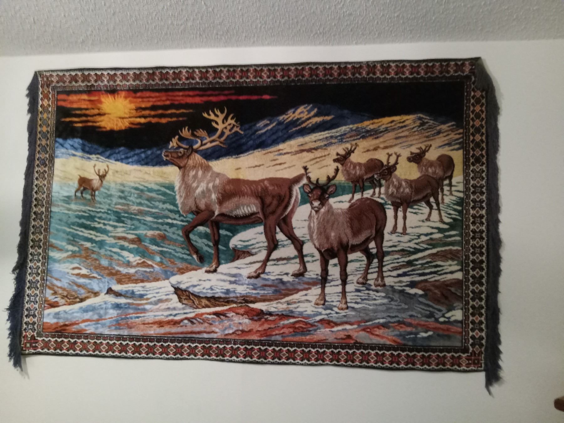 ELK STAG & HAREM' WALL RUG HANGING (LEFT FACING)