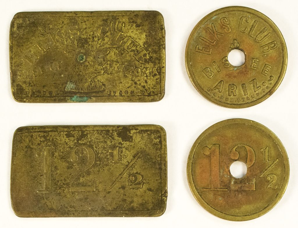 (2) ELKS CLUB // 12½ Brass, ELKS CLUB // 12½ Rectangle Brass (Pictorial)