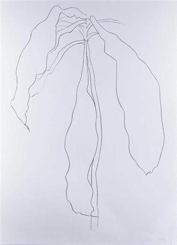 ELLSWORTH KELLY (American, 1923-) "DRACENA II". Transfer lithograph on paper in black on white showing a leaf type drawing. Circa 1983-1985. Publisher Gemini Gel. Pencil signed and numbered 28/30 and embossed CII in corner. PROVENANCE: Christie's New York, Lot 286 November 2, 2003. Unframed and unmounted. SHEET SIZE: 43" x 31-1/2". CONDITION: Professional repair from the top down 5" just reaching into the black part of the print. Otherwise very good. 9-27958