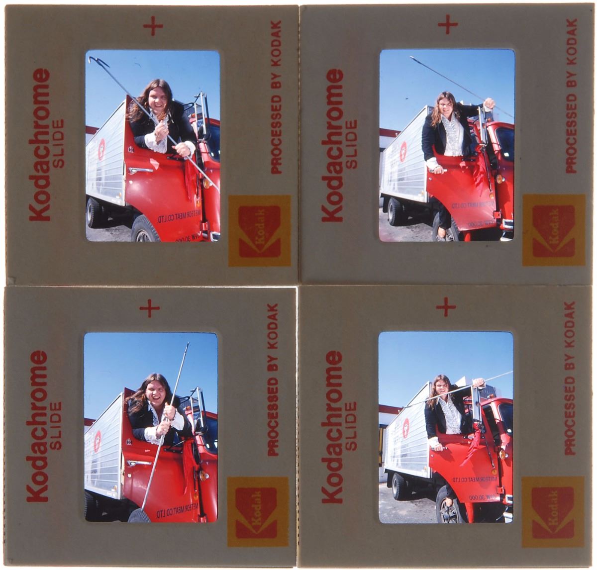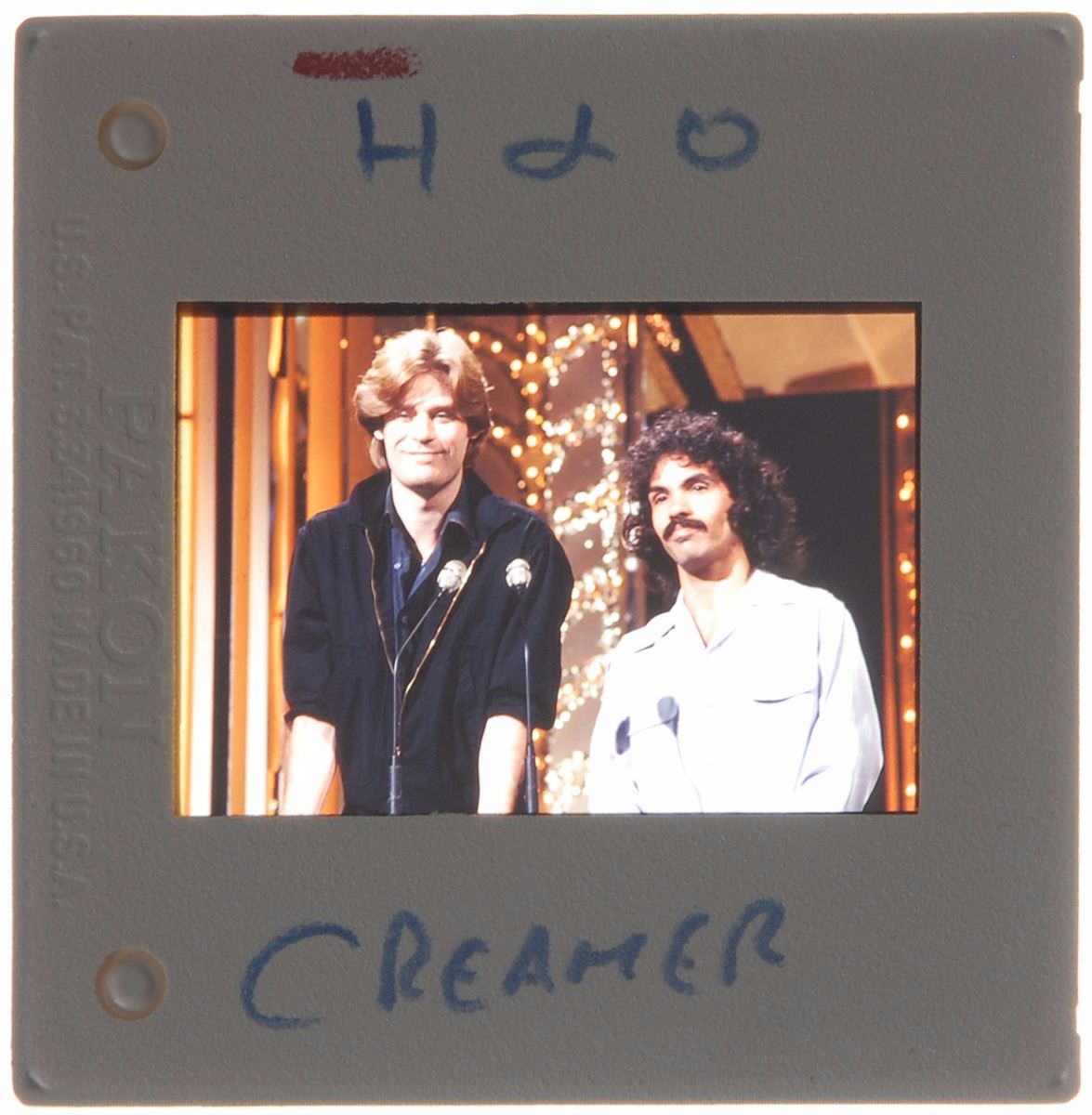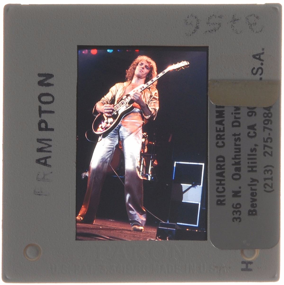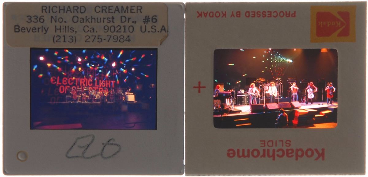 Collection of eight color 35mm slides by Richard Creamer: two of ELO on stage; one showing Hall and Oates side-by-side; one of Peter Frampton playing his guitar; and four of Meat Loaf with a large truck. In overall fine condition. Provenance: Richard Creamer Estate.