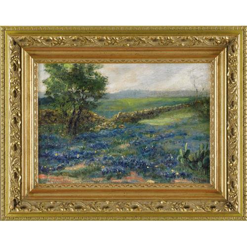 <B>ELOISE POLK MCGILL (1868-1939)</B></I><BR>Untitled Bluebonnet Landscape, 1914<BR>Oil on artist board<BR>10in. x 14in.<BR>Signed lower right<BR><BR>An early Texas Bluebonnet painting, painted before Julian Onderdonk had popularized the genre.<BR><BR>Provenance:<BR>Mrs. W. W. Bogel, 1914<BR>Mrs. Gallie Newton Bogel, 1916<BR>Mrs. Gallie Newton Bogel, Jr., 1974<BR>Mrs. Philip Rootes Bogel, 1986<BR>Mrs. & Mrs. Philip Rootes Bogel, 1988<BR><BR> <B>Condition Report:</B> Excellent condition. Frame in excellent condition.<BR><BR><b>Shipping:</b> Requires 3rd Party Shipping (<a target="_blank" href="http://www.heritageauctions.com/common/shipping.php">view shipping information</a>)