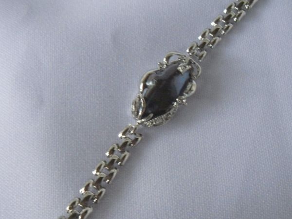 ELONGATED BLACK KISHI CZ PEARL SILVER BRACELET***METAL: **|**|** ELONGATED BLACK KISHI CZ PEARL SILVER BRACELET***METAL: SILVER; APPROXIMATELY 10GRAMS 8-INCH ; MSRP: $200