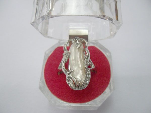 ELONGATED WHITE KISHI PEARL SILVER RING; METAL: SILVER; **|**|** ELONGATED WHITE KISHI PEARL SILVER RING; METAL: SILVER; SIZE: 7 ; MSRP: $500