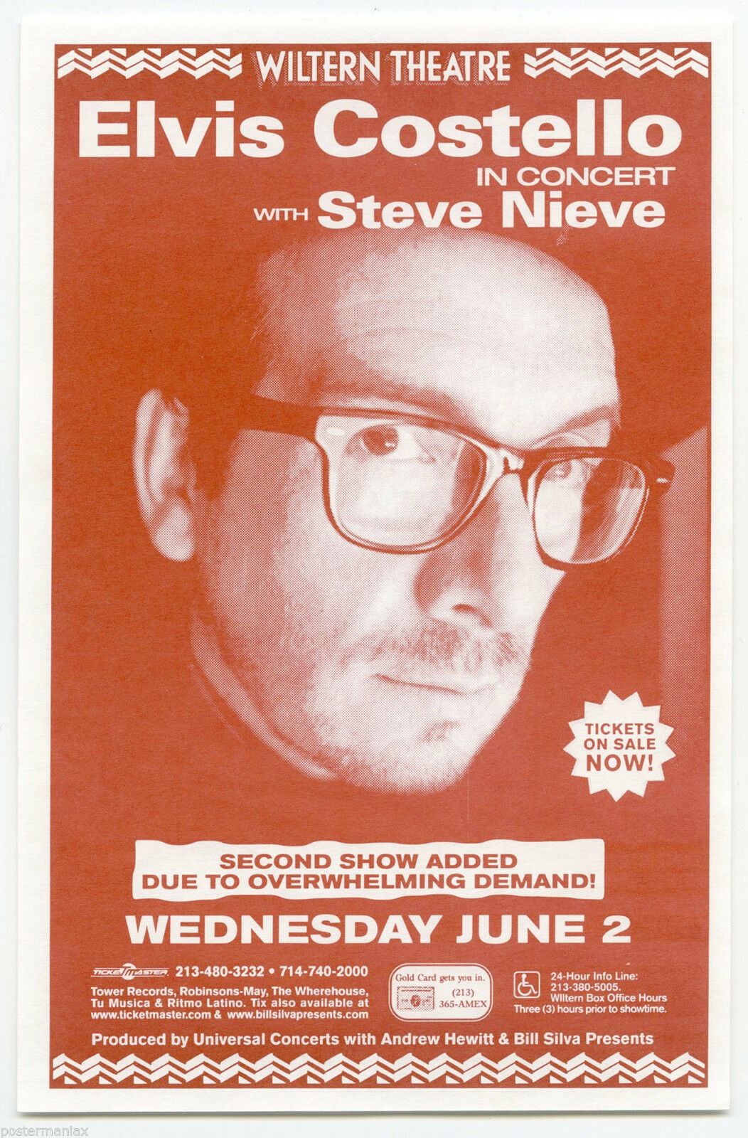 ELVIS COSTELLO Steve Nieve Original 1999 Concert Handbill / Flyer