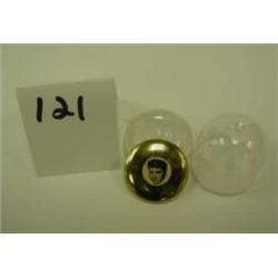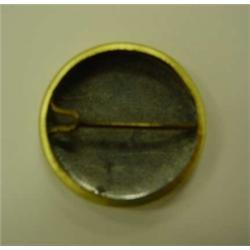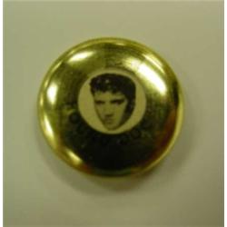 Elvis Hound Dog pin back. 5¢ gumball machine prize with original plastic container. Marked V - no mark on pin. Condition: Very Good