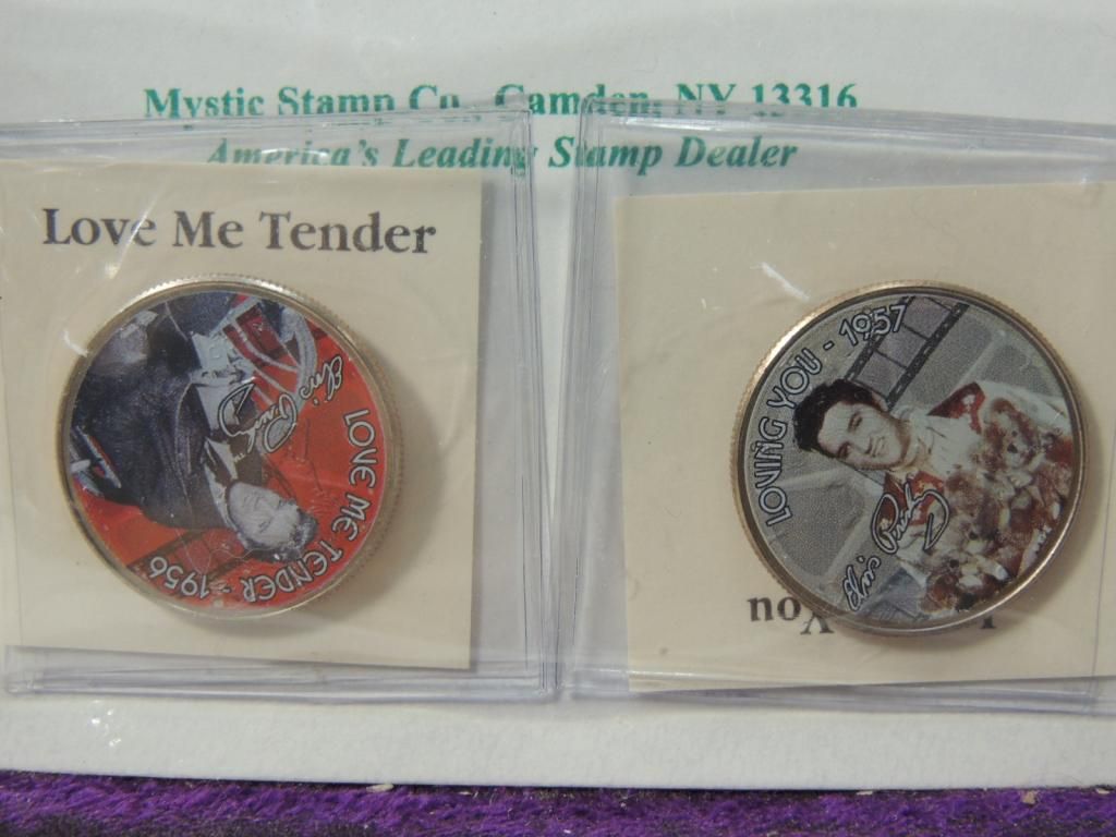LOVE ME TENDER 1956 & LOVING YOU 1957 ELVIS MOVIE COIN COLLECTIBLE. ELVIS COLLECTIBLE. ELVIS MEMORABILIA AS SHOWN. SEE PHOTO FOR MORE DETAILS.
