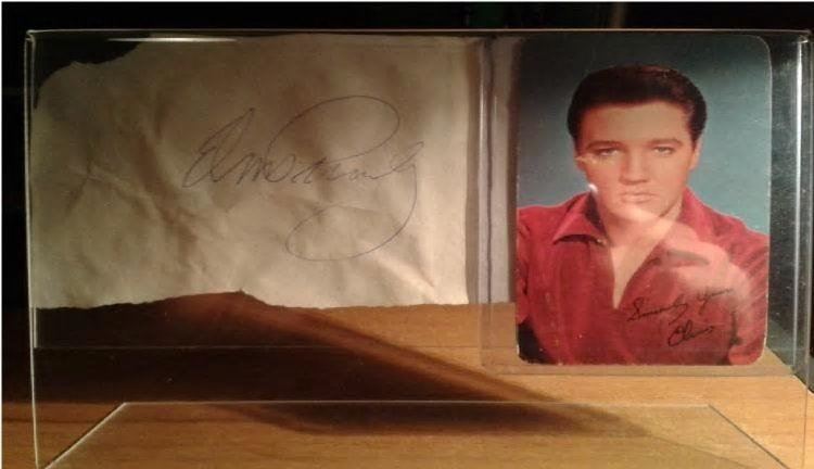 A piece of paper signed by the king of rock and roll. Paper: 15x10 cms.