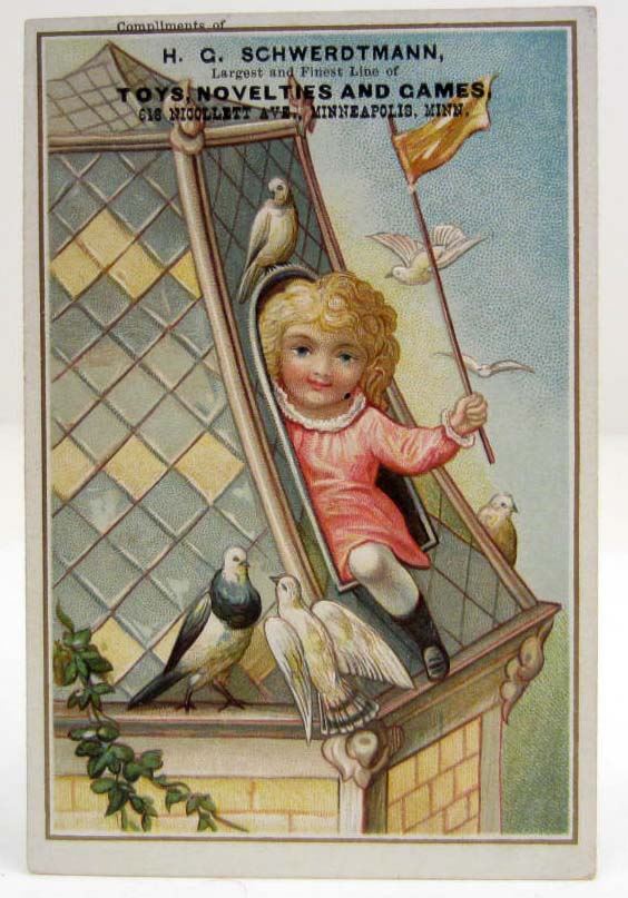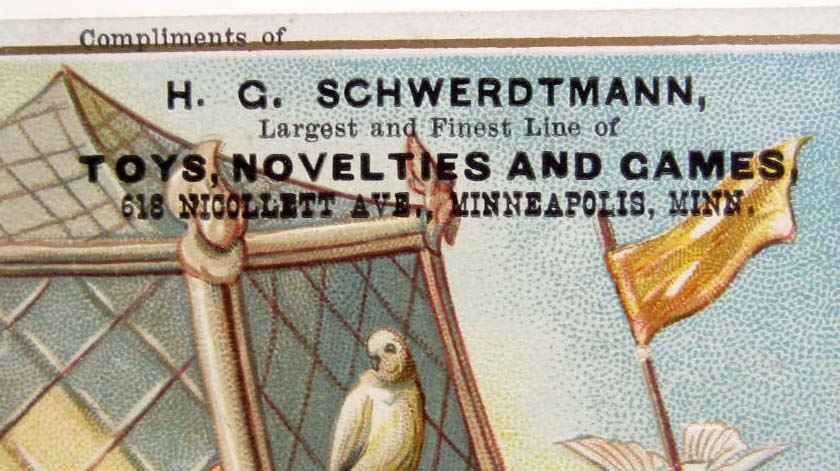 EMBOSSED VICTORIAN TRADE CARD - H.G. SCHWERDTMANN TOYS & GAMES Approx. 3" x 4.75"