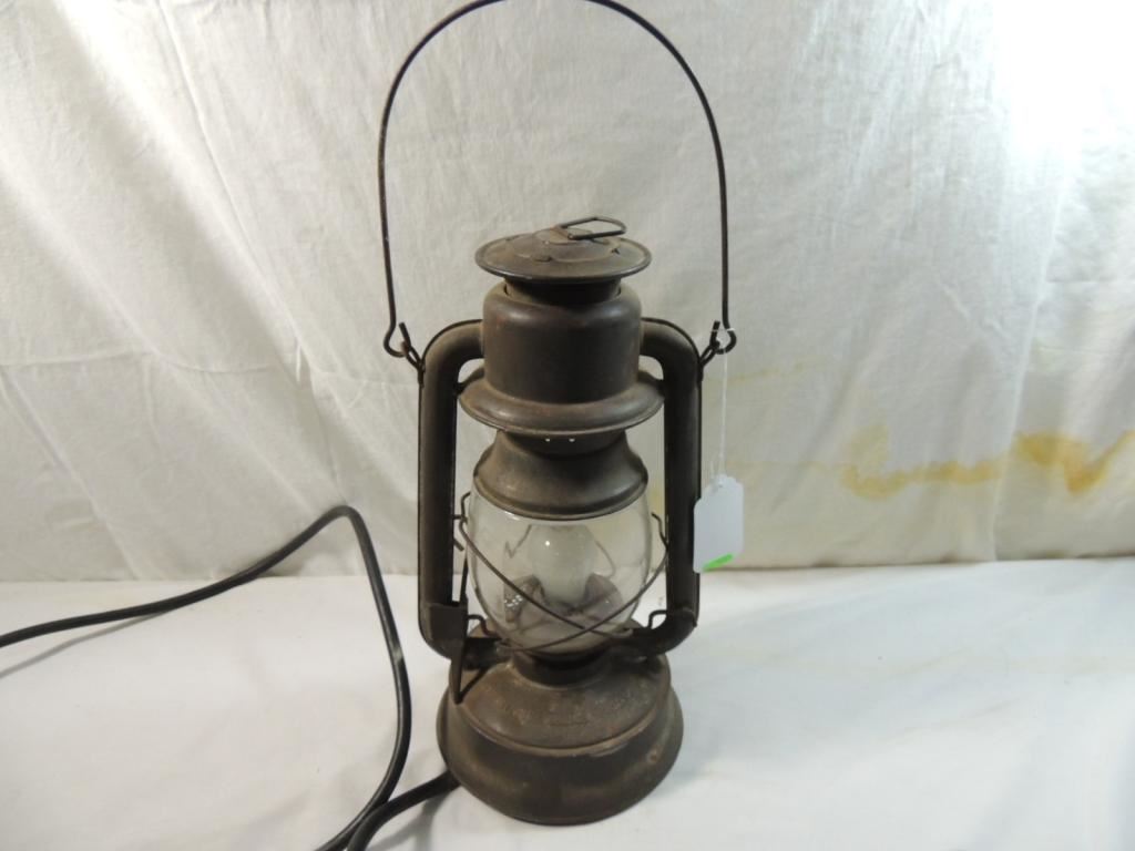 SUPREME EMBURY MFG CO VINTAGE LANTERN CONVERTED TO ELECTRIC LIGHT. AS SHOWN SEE PHOTO FOR MORE DETIALS.