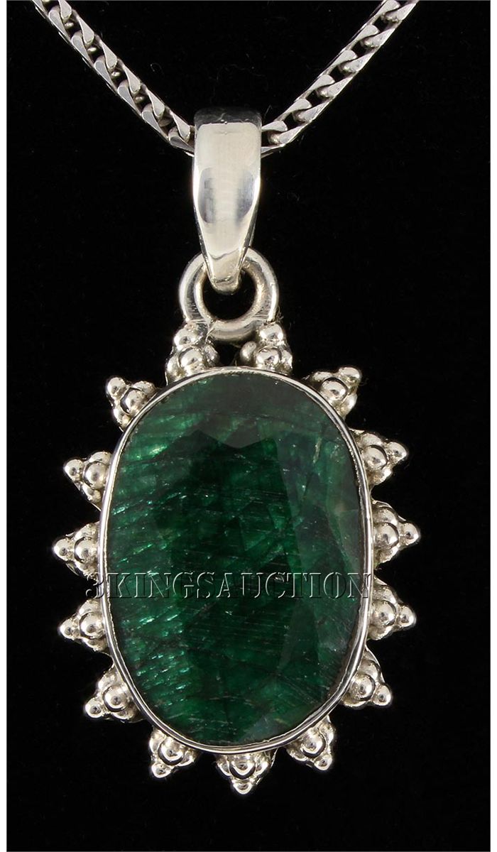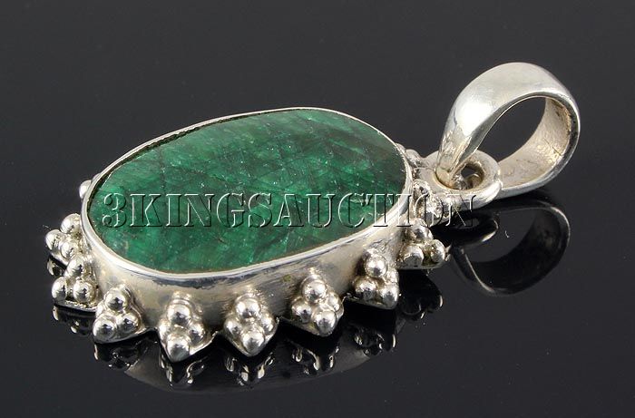 EMEARLD BERYL 24.94CTW STERLING SILVER PENDANT **|**|** 17X14MM OVAL SHAPE EMERALD BERYL FLOWER DESIGN SILVER PENDANT ; MSRP: $300