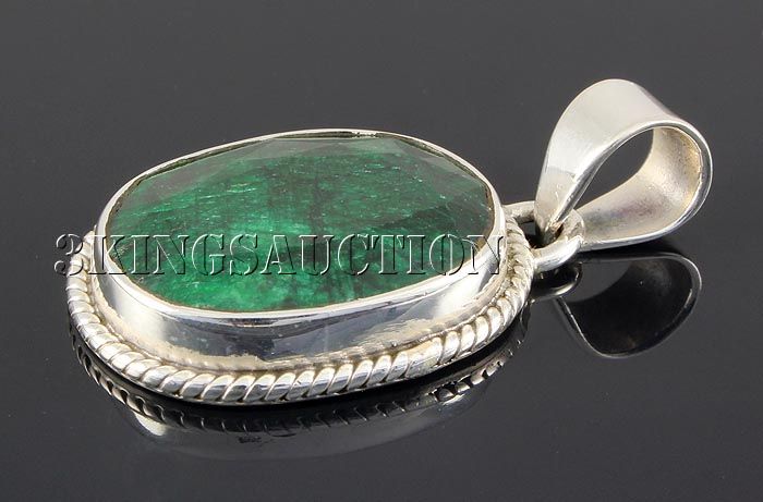 EMEARLD BERYL 32.16CTW STERLING SILVER PENDANT **|**|** 20X16MM OVAL SHAPE EMERALD BERYL STERLING SILVER PENDANT ; MSRP: $400