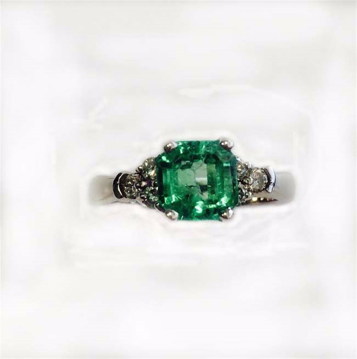 EMERALD 1.45CT, 14K W/G RING 3.58GRAM / DIAMOND RD 0.31CT
