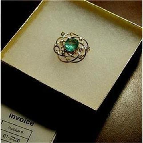 AU COUTURE & FULLY CERTIFIED 5.00 CARAT OVAL CUT EMERALD DIAMOND BROOCH PIN. This Extraordinary Custom Designed Estate Collection Pin. Dense Fully Transparent Vivid Medium Emerald Green NATURAL COLOMBIAN GEM. Spectacular Surface Flash ! Bold Angular Multi Faceted Oval Cut Central Set on Multiple Layers of Radiant Circular Spirals. 14k Yellow Gold Pin combining INTENSE YELLOW DIAMONDS Touched by WHITE ACCENT DIAMOND SURROUND SI-1. Total .65 CARATS of DIAMONDS. STUNNING BEAUTY & ONE OF A KIND CUSTOM SHOWPIECE. Reverse Slide Lock for Secure Wear * Studio Artisan Pin Shows Hours of Intricate Fine Detailing, Hand Set Select Color Gems * Requires Secure Fed X Overnight Service. This Exceptional Creation is Fully Accompanied by A CERTIFICATE OF LICENSED REPLACEMENT APPRAISAL DOCUMENT $ 3100. USD. PRISTINE VAULTED. Inquiries Welcomed - See Text Description Emerald Gemstone, Lower Left of Listing Page. Displayed Photo Plates Shown Natural Desk Lighting. This is a Custom Artisan Crafted Piece. Return Priviledge Policy - To Be Absolutely Assured Stunning On Arrival As Described. 100% Well Documented Positive Client Feedbacks * This Custom Setting Dazzels .... Striking on Black Jacket or Cocktail Dress Wear