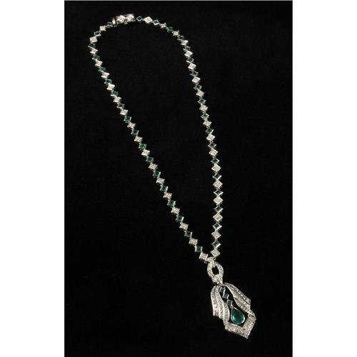 NECKLACE: Radient 18K white gold, diamond and emerald Art Deco style necklace. The emeralds measure approximately 4.2ctw and the diamonds measure approximately 3.23ctw. Appraisal included.