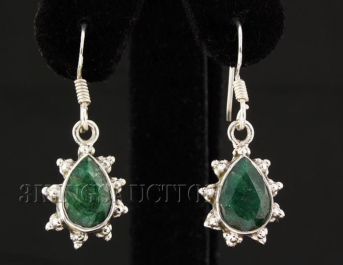 EMERALD BERYL 20.80CTW MINI SILVER HOOK EARRING **|**|** 11X8MM CUTE PEAR SHAPE EMERALD BERYL STERLING SILVER HOOK EARRING ; MSRP: $300