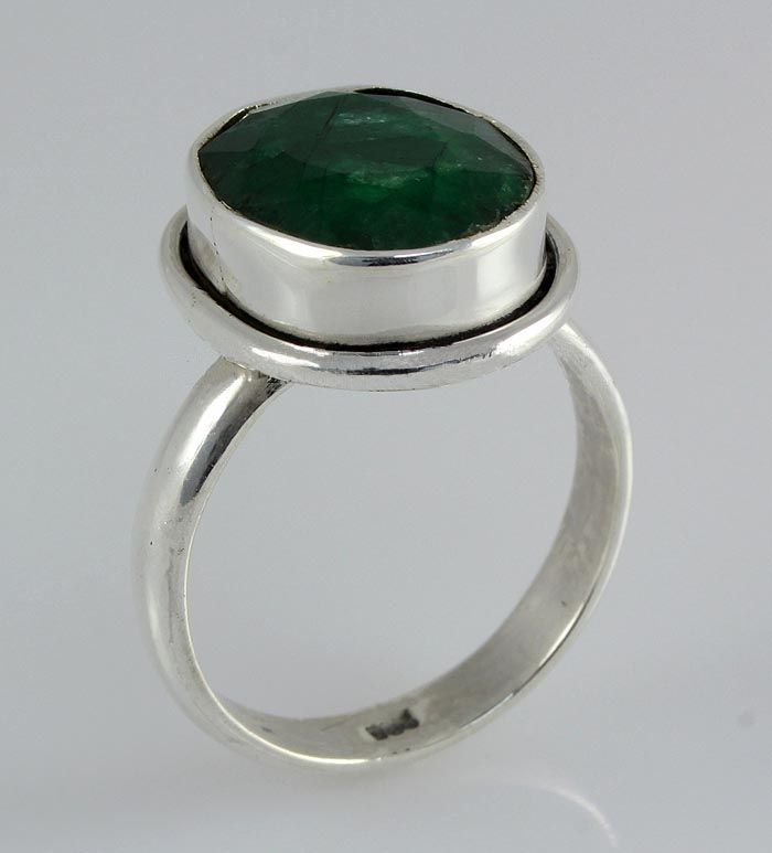 EMERALD BERYL 22.67CTW STERLING SILVER RING **|**|** 13X10MM OVAL SHAPE EMERALD BERYL BEZEL TYPE SILVER RING; SIZE 6 ; MSRP: $100