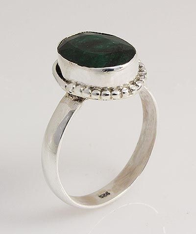 STERLING SILVER OVAL RING WITH 13X9MM APPROX EMERALD BERYL GEMSTONE