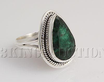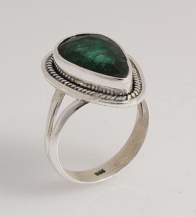 STERLING SILVER PEAR RING WITH 15X9MM APPROX EMERALD BERYL GEMSTONE