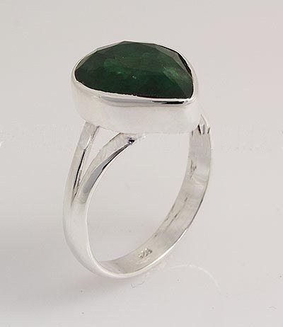 STERLING SILVER PEAR RING WITH 15X11MM APPROX EMERALD BERYL GEMSTONE