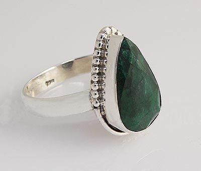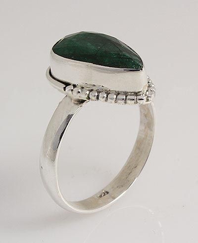 STERLING SILVER PEAR RING WITH 15X10MM APPROX EMERALD BERYL GEMSTONE