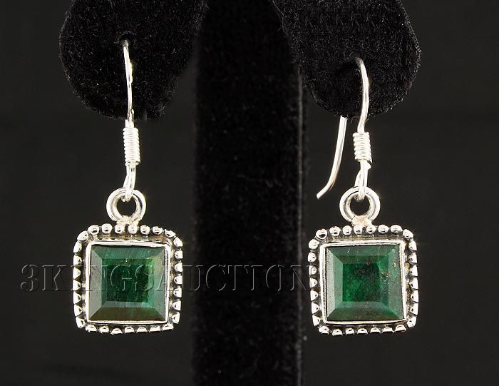 EMERALD BERYL 24.64CTW MINI SILVER HOOK EARRING **|**|** 9X9MM CUTE SQUARE SHAPE EMERALD BERYL STERLING SILVER HOOK EARRING ; MSRP: $300