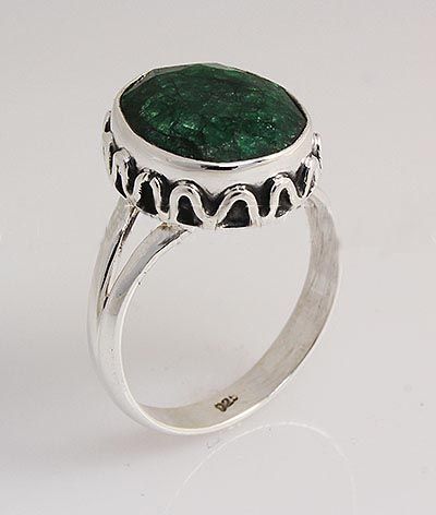 EMERALD BERYL 25.72CTW ANTIQUE LOOKS SILVER RING **|**|** STERLING SILVER OVAL RING WITH 14X11MM APPROX EMERALD BERYL GEMSTONE ; MSRP: $100