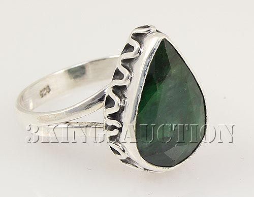 STERLING SILVER PEAR RING WITH 16X10MM APPROX EMERALD BERYL GEMSTONE