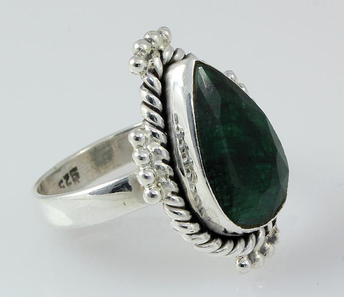 16.16X10.61MM PEAR SHAPE EMERALD BERYL ANTIQUE DESIGN SILVER RING; SIZE 6.5