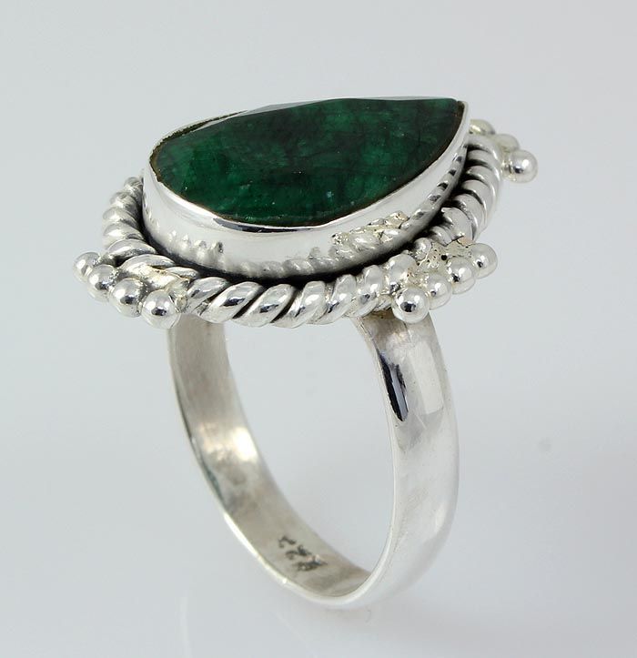 16.16X10.61MM PEAR SHAPE EMERALD BERYL ANTIQUE DESIGN SILVER RING; SIZE 6.5