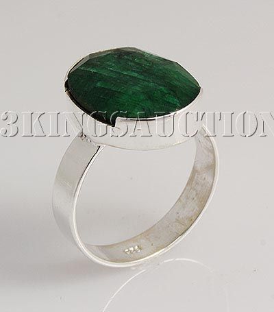 STERLING SILVER OVAL RING WITH 16X12MM APPROX EMERALD BERYL GEMSTONE