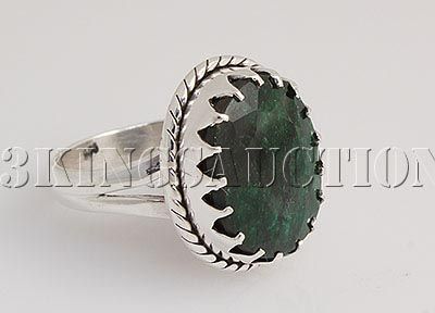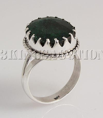 STERLING SILVER OVAL RING WITH 15X12MM APPROX EMERALD BERYL GEMSTONE