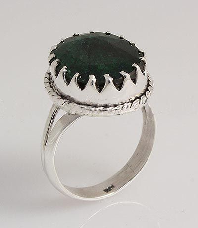 EMERALD BERYL 27.05CTW UNIQUE DESIGN SILVER RING **|**|** STERLING SILVER OVAL RING WITH 15X12MM APPROX EMERALD BERYL GEMSTONE ; MSRP: $100