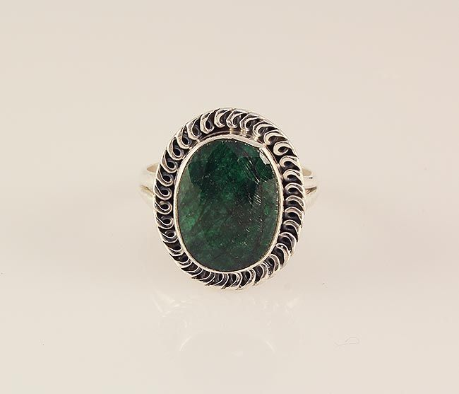 EMERALD BERYL 27.12CTW ANTIQUE LOOKS SILVER RING **|**|** STERLING SILVER OVAL RING WITH 14X11MM APPROX EMERALD BERYL GEMSTONE ; MSRP: $100