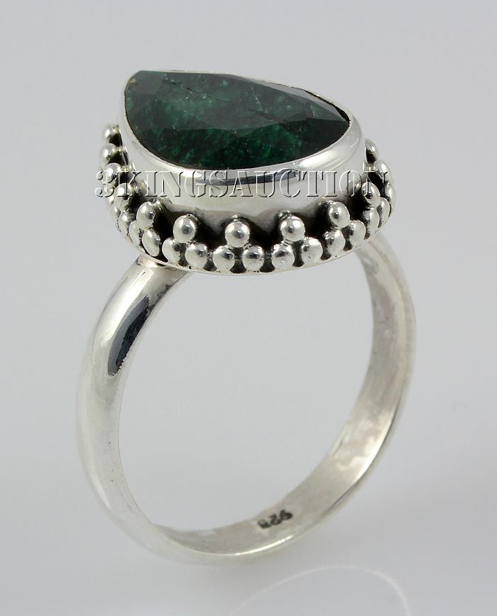 EMERALD BERYL 27.52CTW STERLING SILVER RING **|**|** 16.28X11.12MM PEAR SHAPE EMERALD BERYL FLOWER DESIGN SILVER RING; SIZE 7.5 ; MSRP: $100