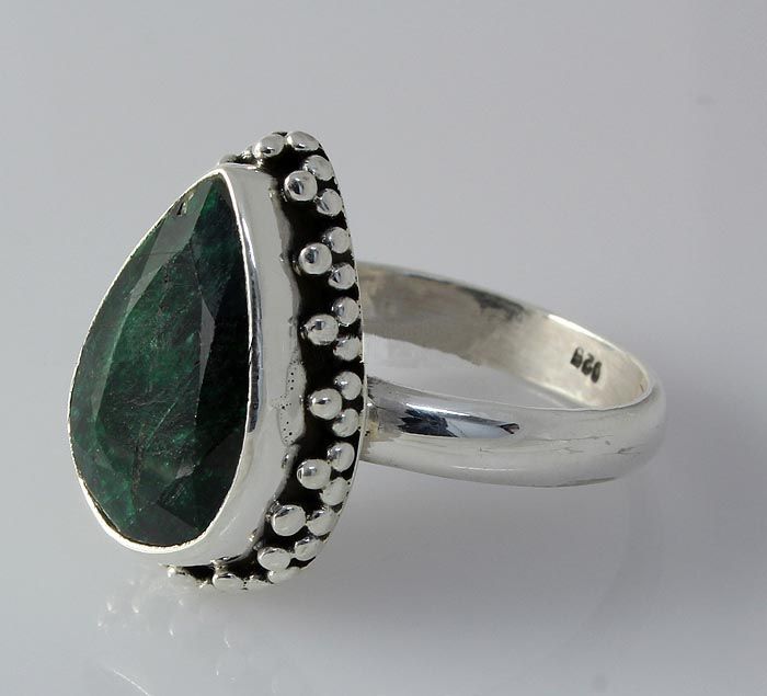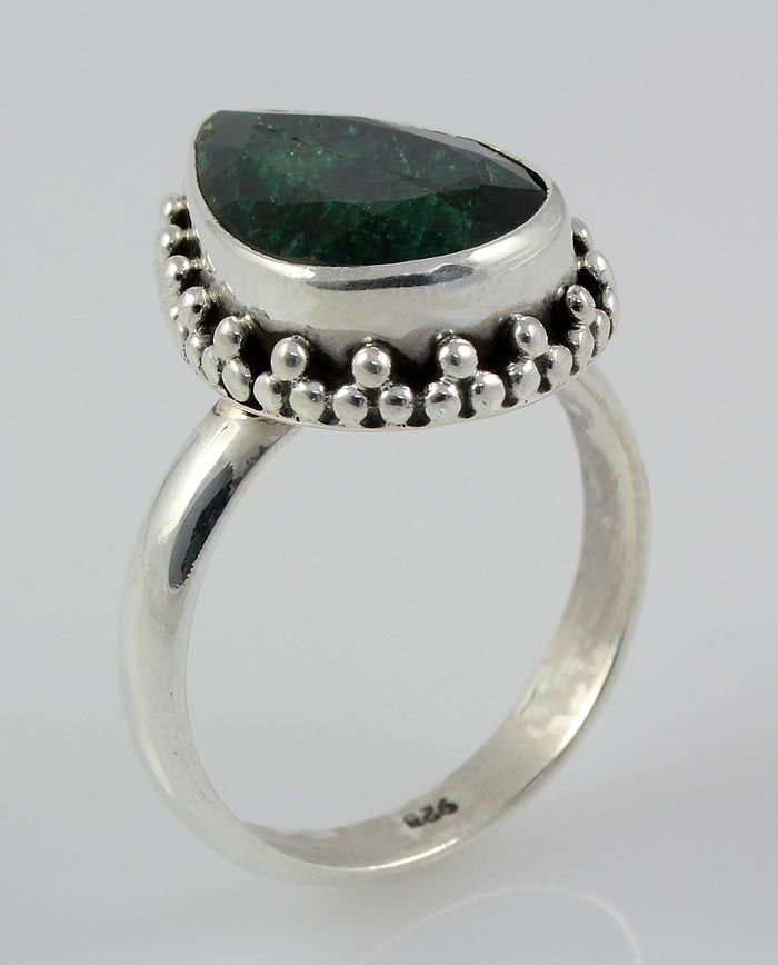 16.28X11.12MM PEAR SHAPE EMERALD BERYL FLOWER DESIGN SILVER RING; SIZE 7.5