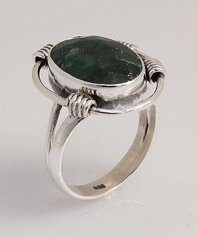 STERLING SILVER OVAL RING WITH 15X10MM APPROX EMERALD BERYL GEMSTONE