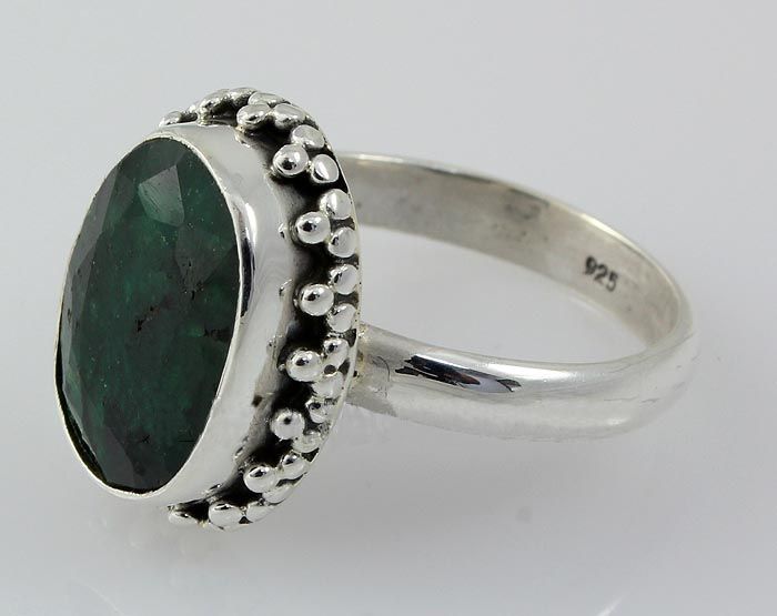 EMERALD BERYL 29.48CTW STERLING SILVER RING **|**|** 15.01X10.81MM OVAL SHAPE EMERALD BERYL FLOWER DESIGN SILVER RING; SIZE 8.5 ; MSRP: $100