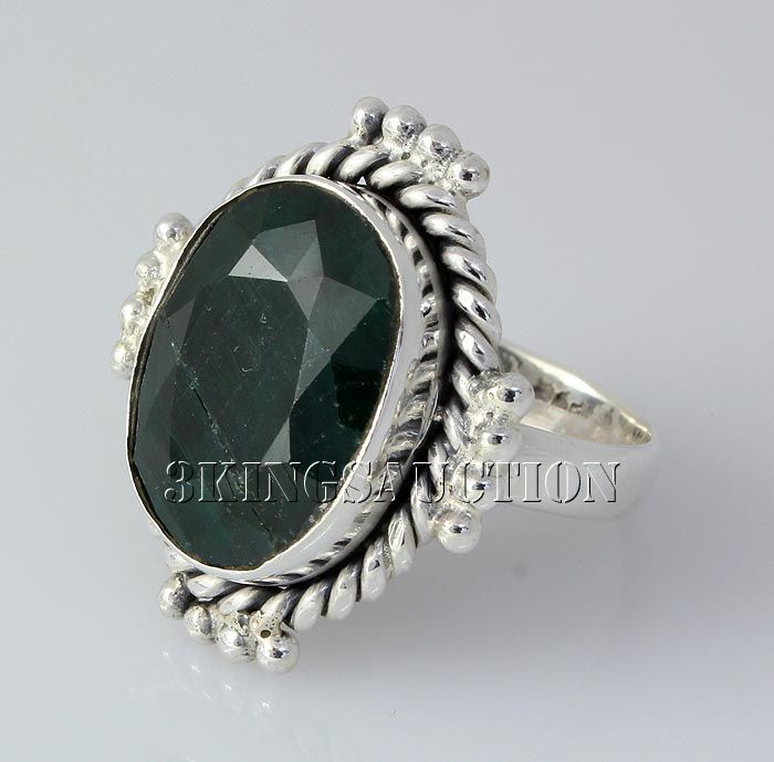 EMERALD BERYL 30.00CTW STERLING SILVER RING **|**|** 16X13MM OVAL SHAPE EMERALD BERYL ANTIQUE DESIGN SILVER RING; SIZE 7.5 ; MSRP: $100