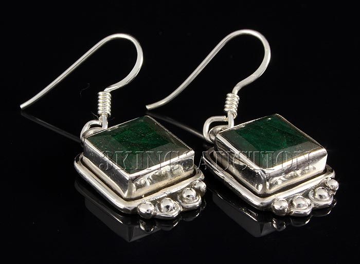 EMERALD BERYL 32.85CTW SILVER HOOK EARRING **|**|** 10X10MM SQUARE SHAPE EMERALD BERYL BEZEL TYPE SILVER HOOK EARRING ; MSRP: $400