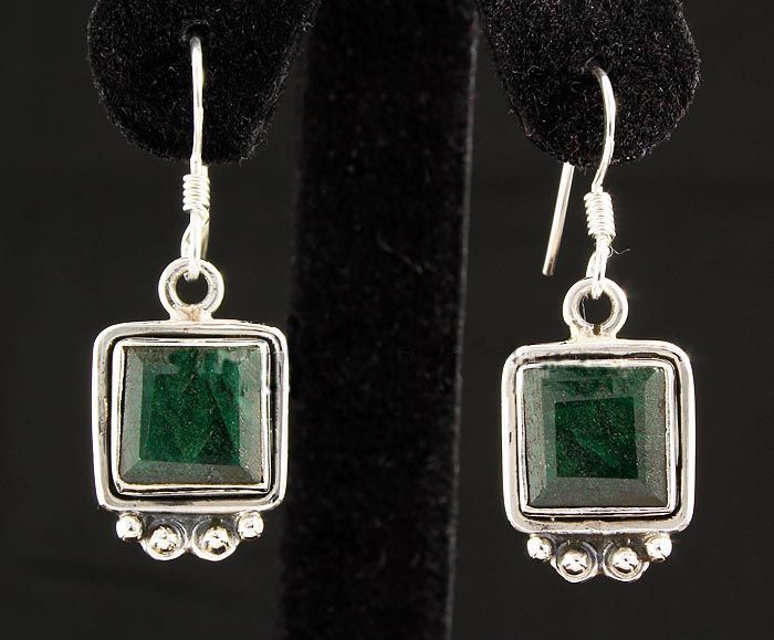 EMERALD BERYL 32.85CTW SILVER HOOK EARRING **|**|** 10X10MM SQUARE SHAPE EMERALD BERYL BEZEL TYPE SILVER HOOK EARRING ; MSRP: $400