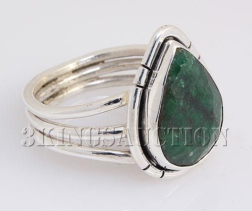 STERLING SILVER PEAR RING WITH 15X10MM APPROX EMERALD BERYL GEMSTONE