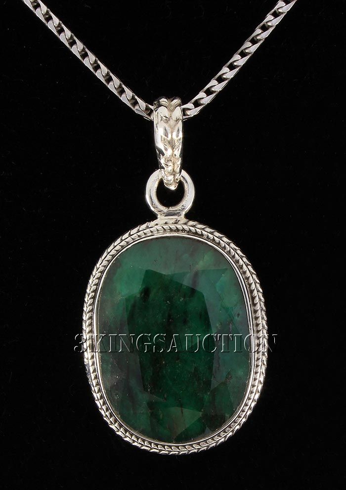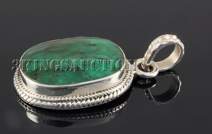 EMERALD BERYL 33.67CTW STERLING SILVER PENDANT **|**|** 20X15MM OVAL SHAPE EMERALD BERYL STERLING SILVER PENDANT ; MSRP: $400