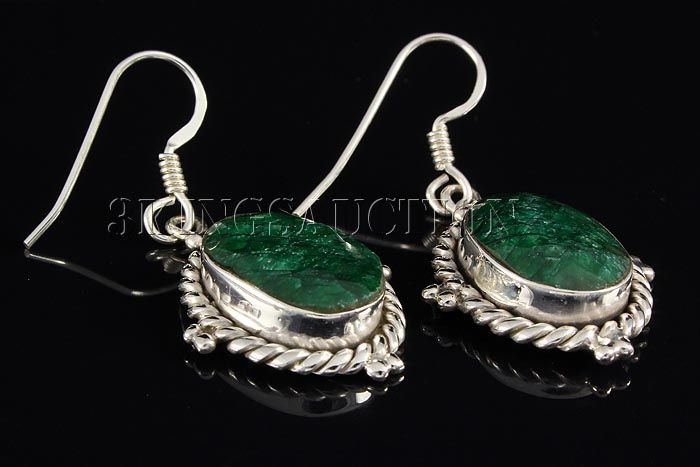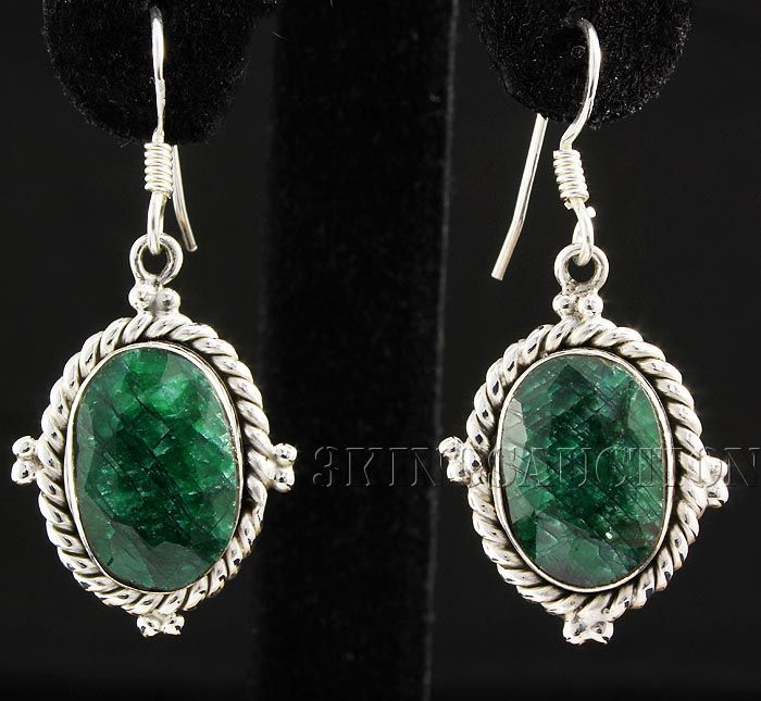EMERALD BERYL 34.08CTW SILVER HOOK EARRING **|**|** 15X11MM OVAL SHAPE EMERALD BERYL STERLING SILVER HOOK EARRING ; MSRP: $400
