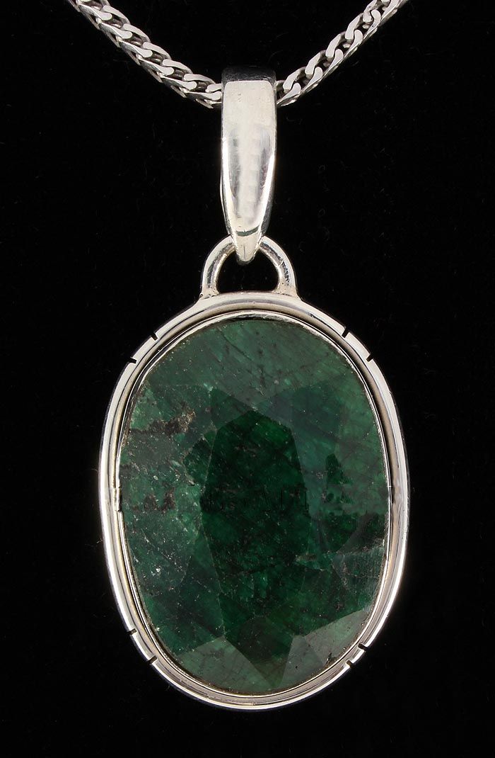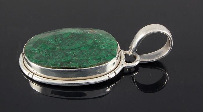 EMERALD BERYL 34.64CTW STERLING SILVER PENDANT **|**|** 23X17MM OVAL SHAPE EMERALD BERYL BEZEL TYPE SILVER PENDANT ; MSRP: $100