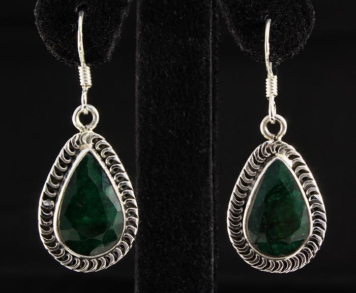 EMERALD BERYL 41.46CTW SILVER HOOK EARRING **|**|** STERLING SILVER PEAR EARRING WITH 15X10MM APPROX EMERALD BERYL GEMSTONE ; MSRP: $200