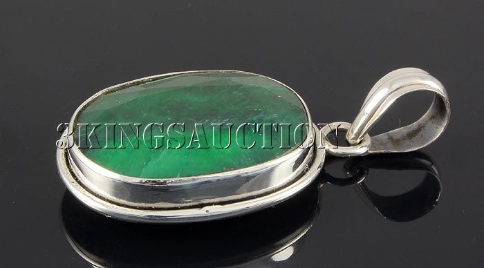 EMERALD BERYL 46.69CTW STERLING SILVER PENDANT **|**|** 23X18MM OVAL SHAPE EMERALD BERYL BEZEL TYPE SILVER PENDANT ; MSRP: $500