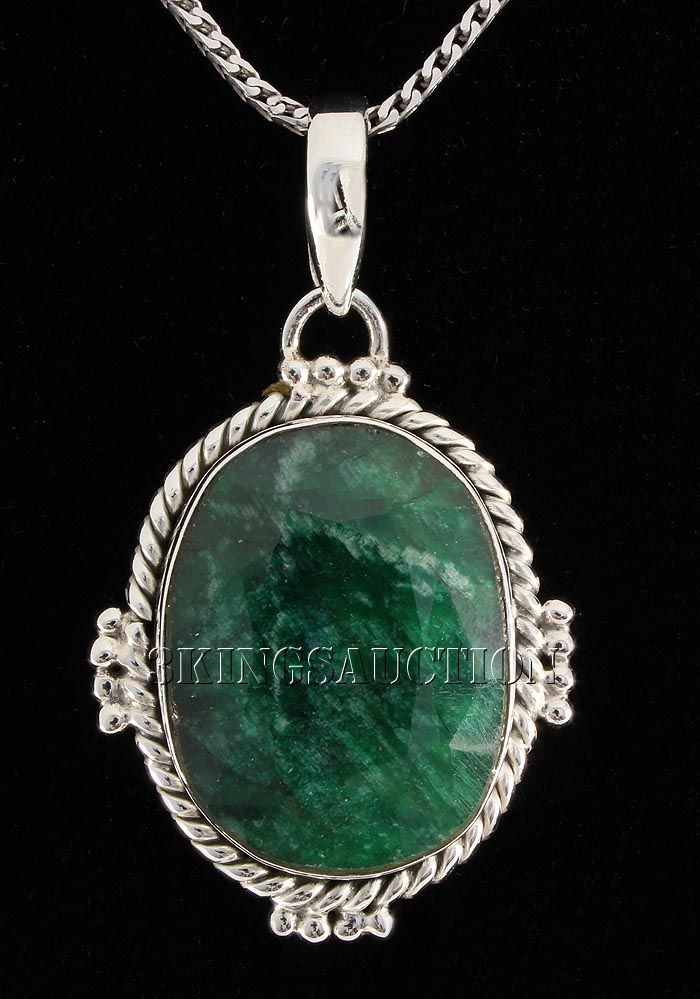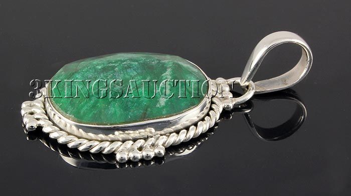 EMERALD BERYL 51.28CTW STERLING SILVER PENDANT **|**|** 25X20MM OVAL SHAPE EMERALD BERYL ANTIQUE DESIGN SILVER PENDANT ; MSRP: $600
