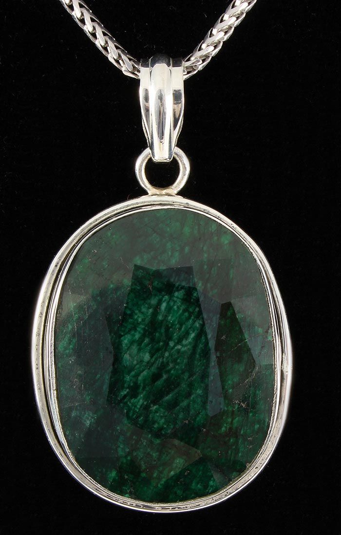 27X22MM OVAL SHAPE EMERALD BERYL STERLING SILVER PENDANT